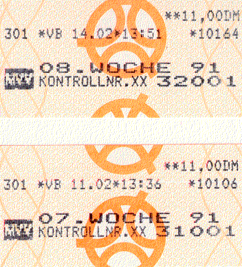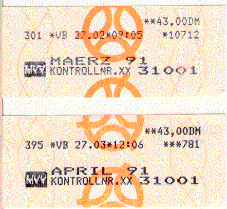 A fiókok alján érdekes dolgok szoktak megbújni, Ezek közé tartozik néhány bérletszelvény a müncheni közlekedési vállalattól (MVV) 1991-ből: