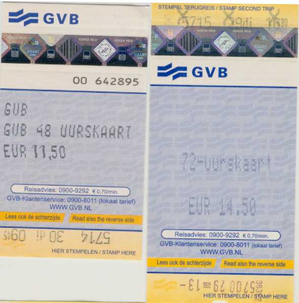 GVB (Hollandia, Amsterdam) napi jegyek. Sima bemutatósak: