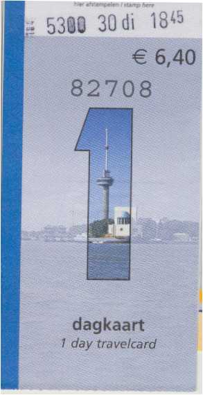 RET (Hollandia, Rotterdam) napi jegy. Sima bemutatósak: