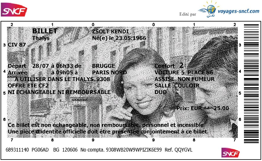 Thalys nagysebsségű vasút (Belgium) ablaknál vásárolható jegy: