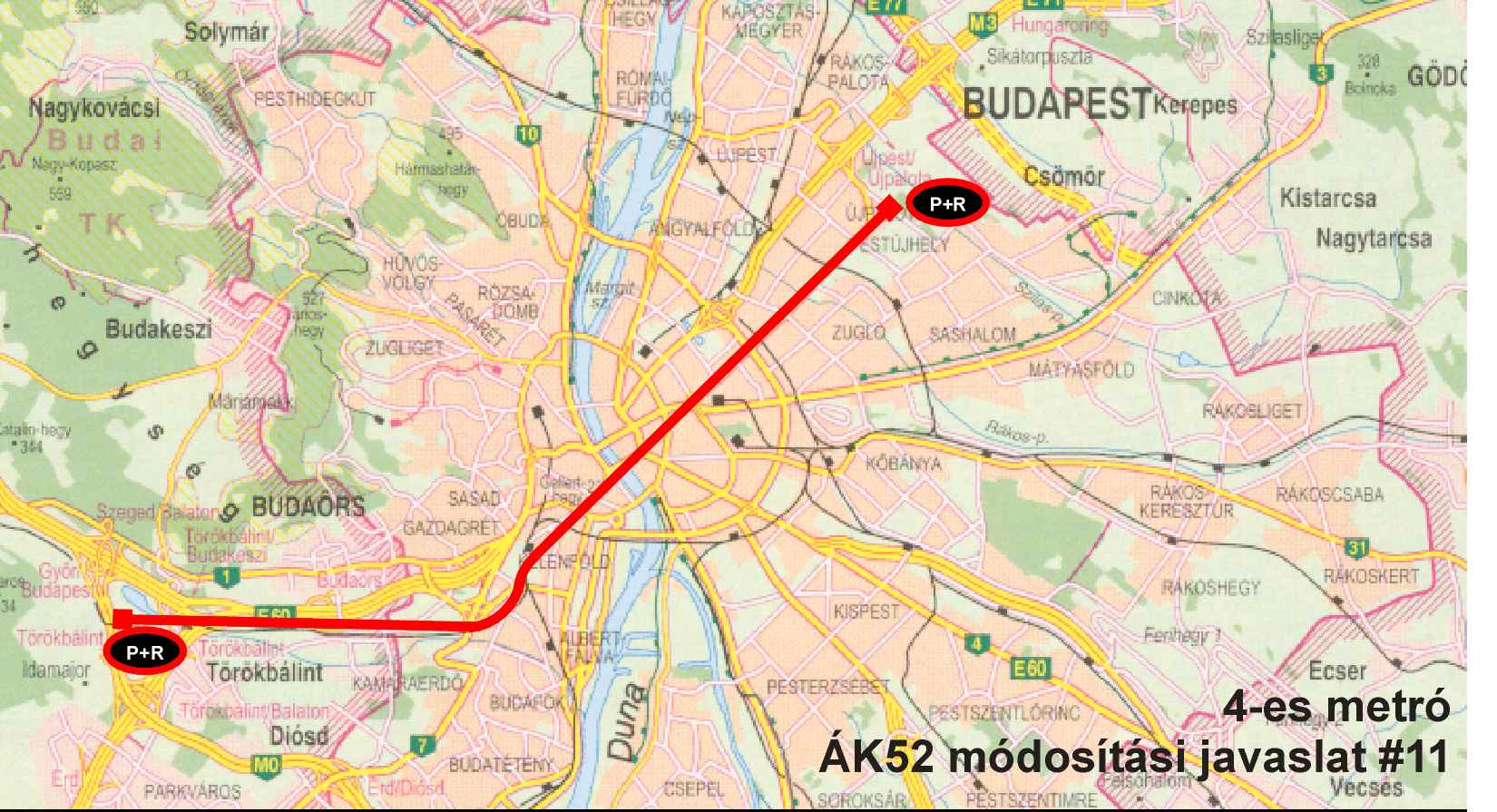 - M0 (Törökbálint) P+R - Kálvin tér ~25perc