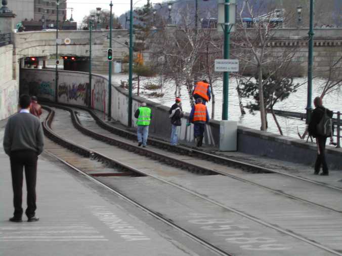 És egy vizen járó villamos a 2006 áprilisi áradásnál:
